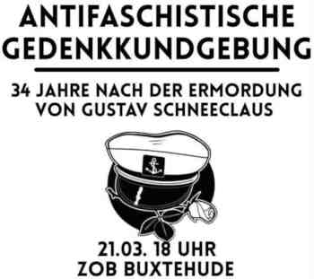 Sein Todestag jährt sich nun zum 34. Mal und wir wollen Gustav gemeinsam mit euch am 21.03.26 um 18:00 Uhr am Gustav-Schneeclaus-Platz (ZOB Buxtehude) gedenken. Wir freuen uns auf euer Kommen und wie immer gilt